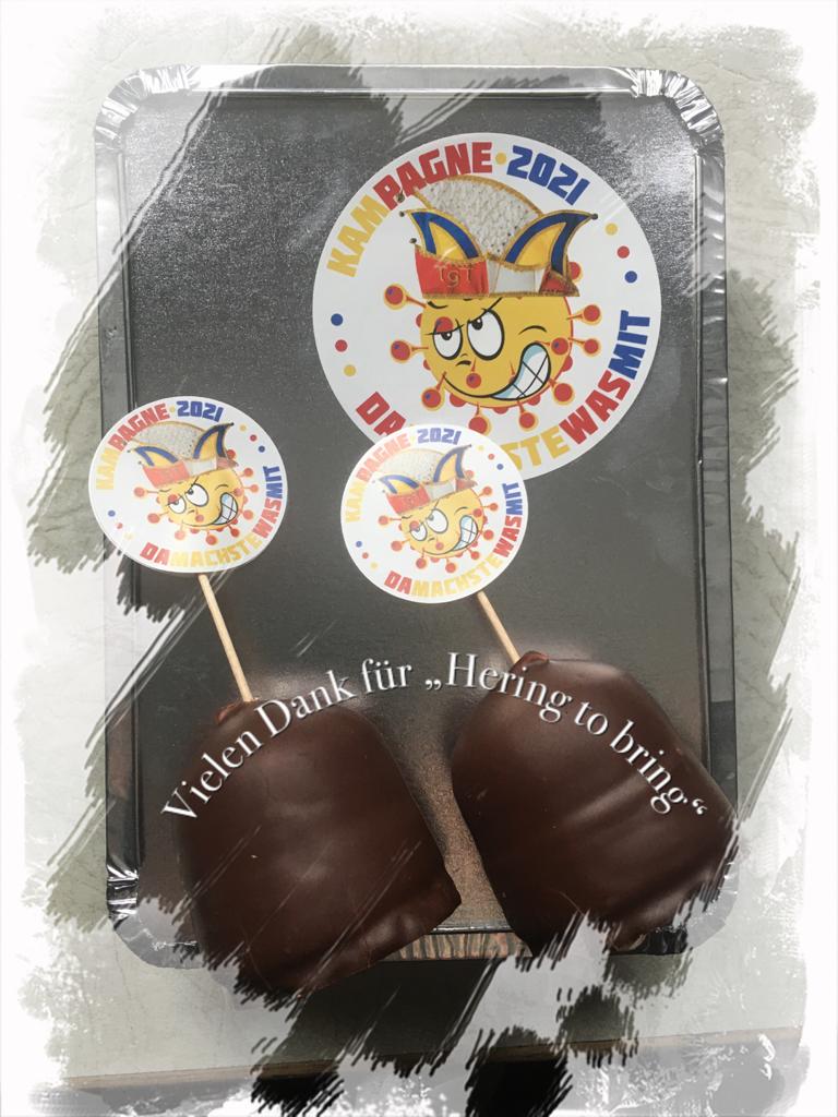 Am Aschermittwoch wird die Kampagne 2021 mit dem traditionellen Heringsessen beendet; allerdings to go. 140 Portionen Heringe müssen zubereitet, verpackt und ausgeliefert werden.